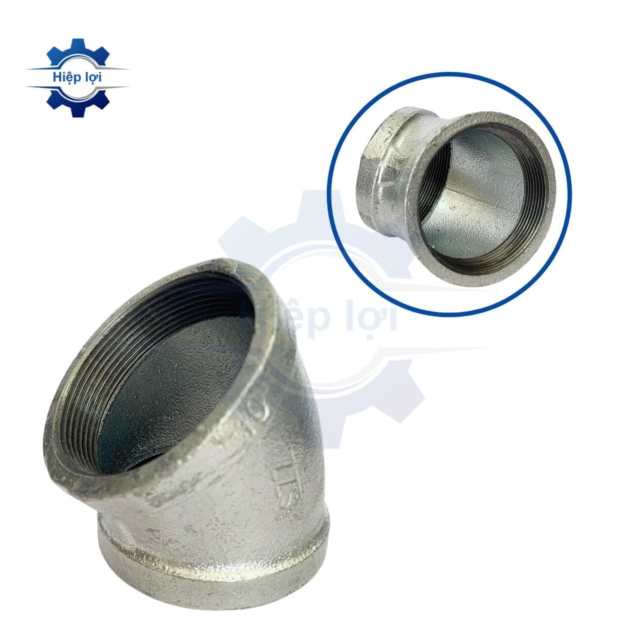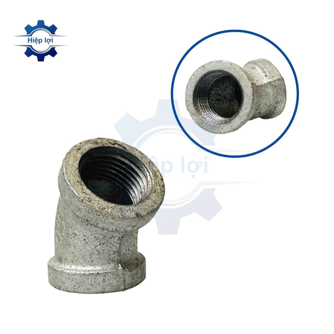Co Lơ Sắt Kẽm (hay còn được gọi là Co Ren 45 Độ) là một loại phụ kiện ống được sử dụng trong hệ thống ống dẫn nước, hệ thống thoát nước, và các ứng dụng liên quan khác. Đặc điểm nổi bật của Co Lơ Sắt Kẽm là có góc cong 45 độ, giúp chuyển hướng dòng chất lỏng hoặc khí trong hệ thống ống.