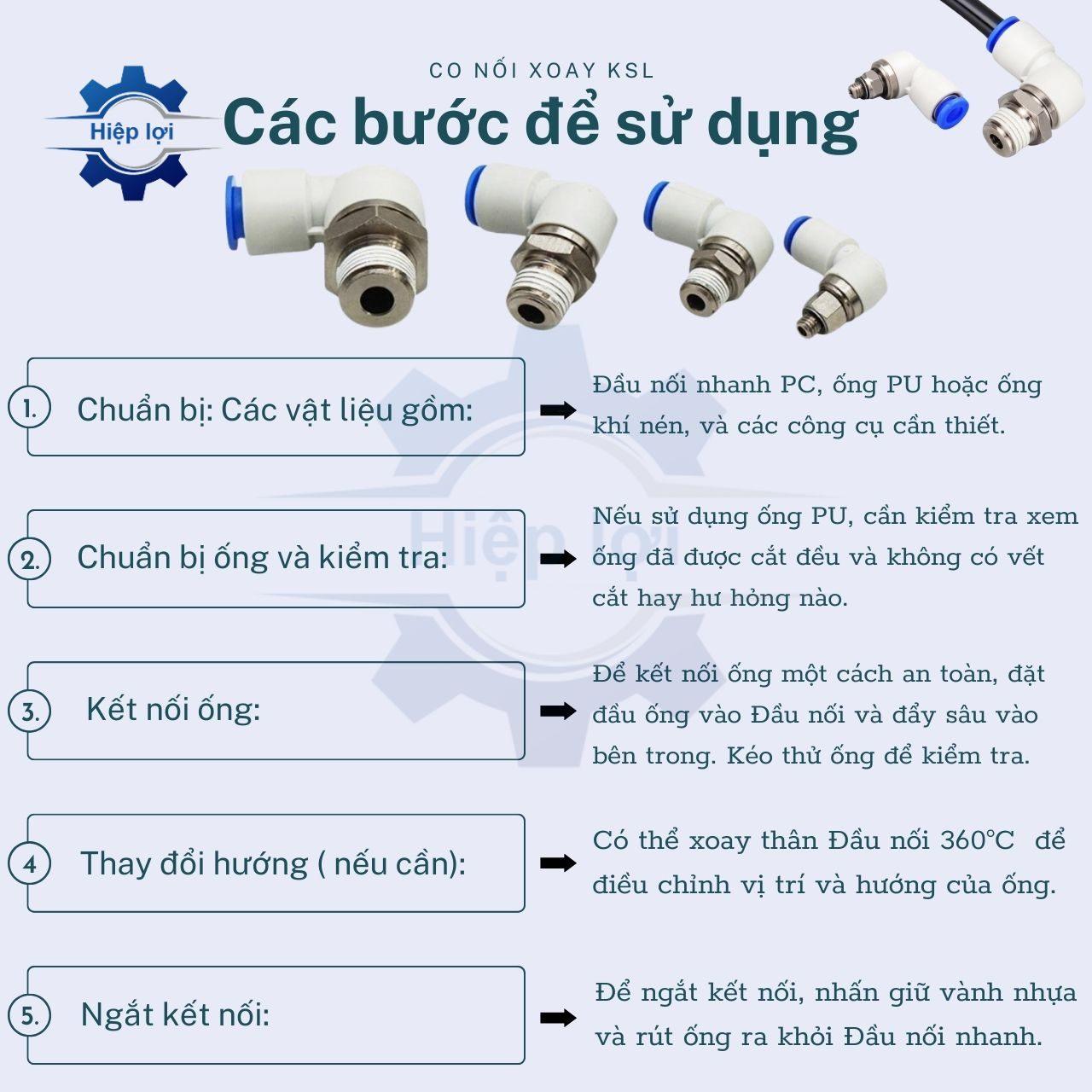 Dưới đây là một số lưu ý khi sử dụng Co Nối Khí Nén Xoay KSL: