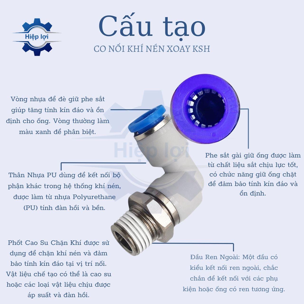 Dưới đây là các chức năng và lợi ích của Co Nối Khí Nén Xoay KSL: