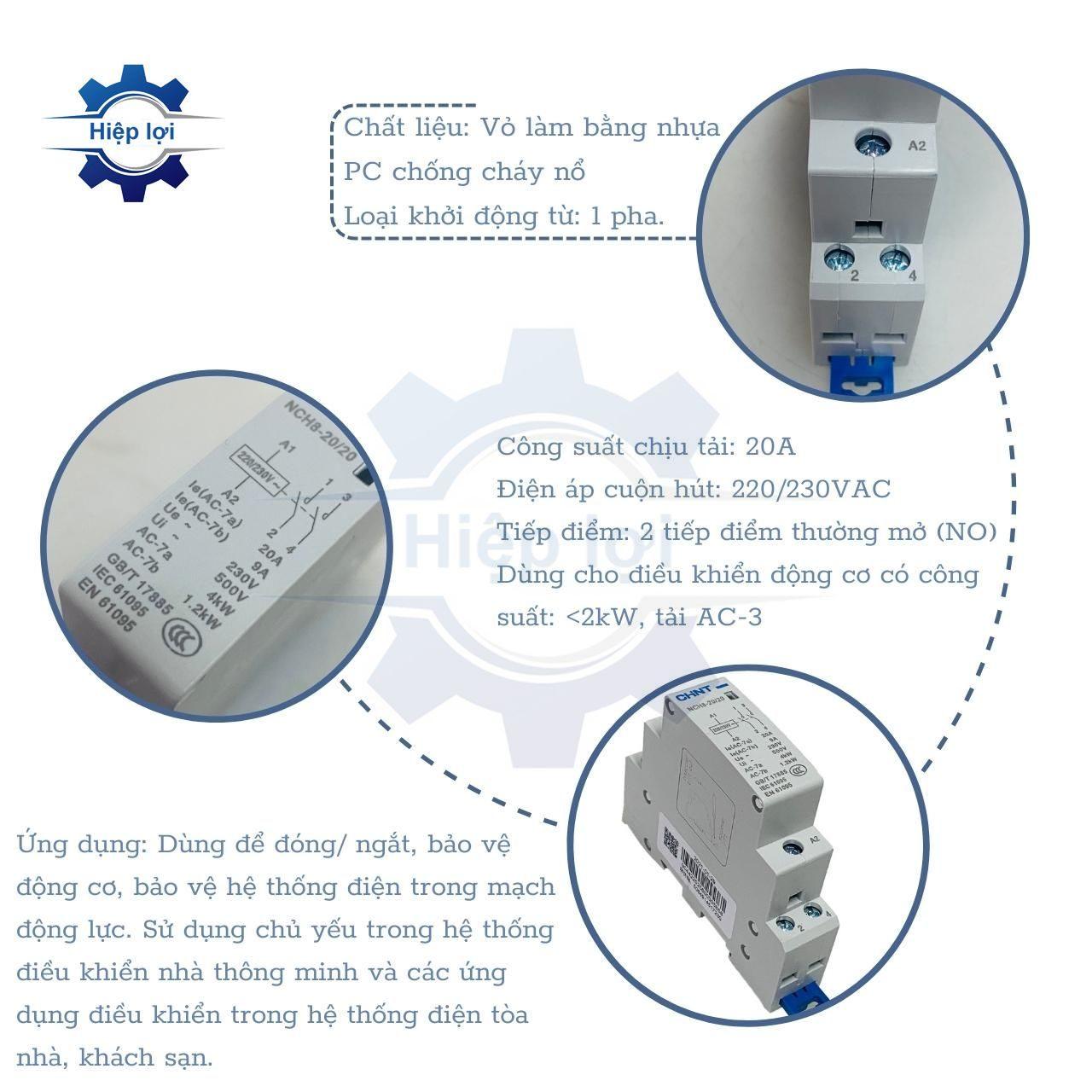 Công tắc tơ tép Chint loại NCH8-20/20 thường được sử dụng trong các ứng dụng công nghiệp, cơ sở hạ tầng, và các hệ thống điện yêu cầu mức điện áp ổn định và hiệu suất cao. Nó giúp cải thiện khả năng quản lý và kiểm soát của hệ thống điện, đồng thời bảo đảm an toàn và ổn định trong việc cung cấp điện năng.