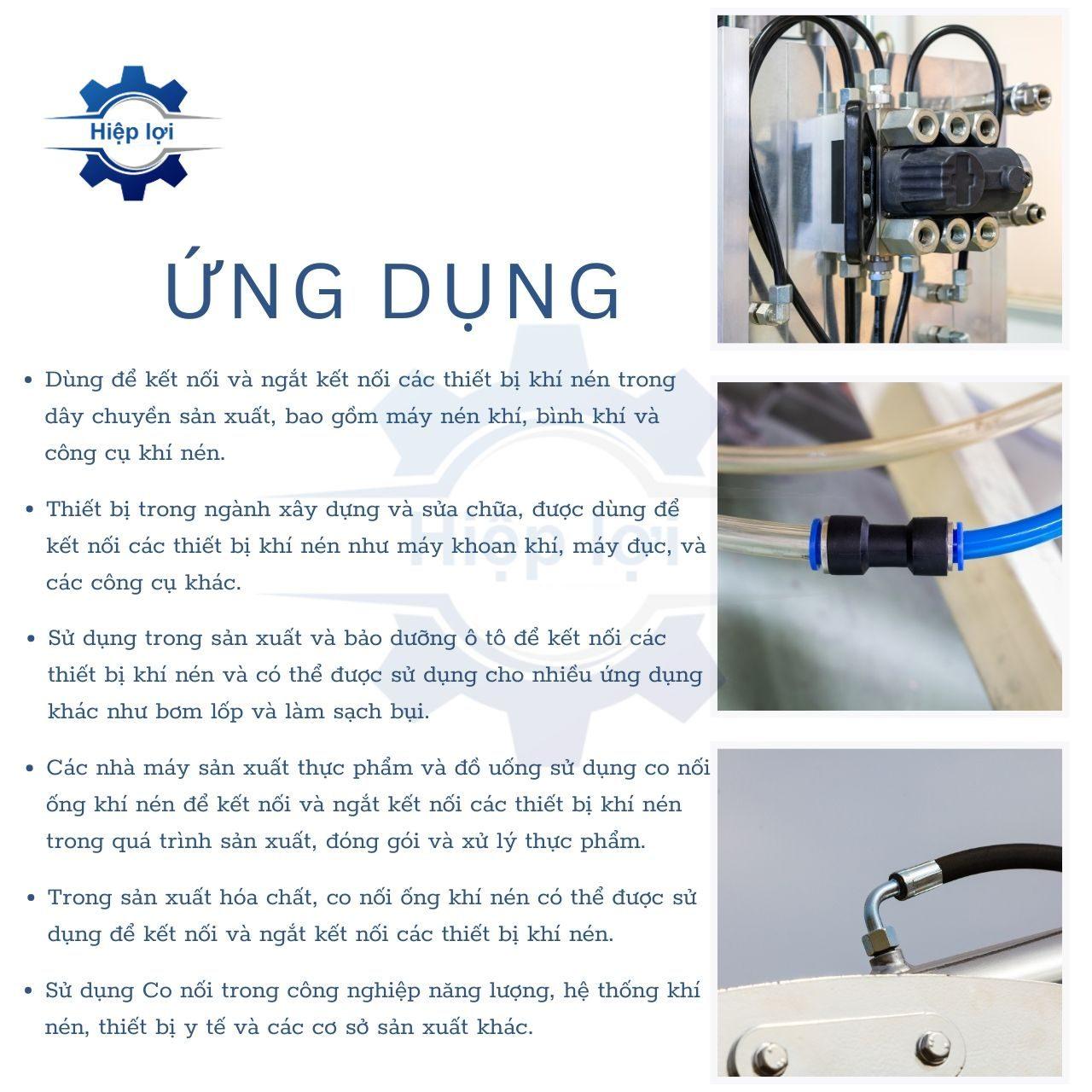 - Kết nối ống khí nén: Ngã ba được sử dụng để kết nối các đoạn ống khí nén với nhau. Đầu ren ngoài giúp kết nối với các thành phần khác trong hệ thống, như van, xi lanh, hoặc ống chính.