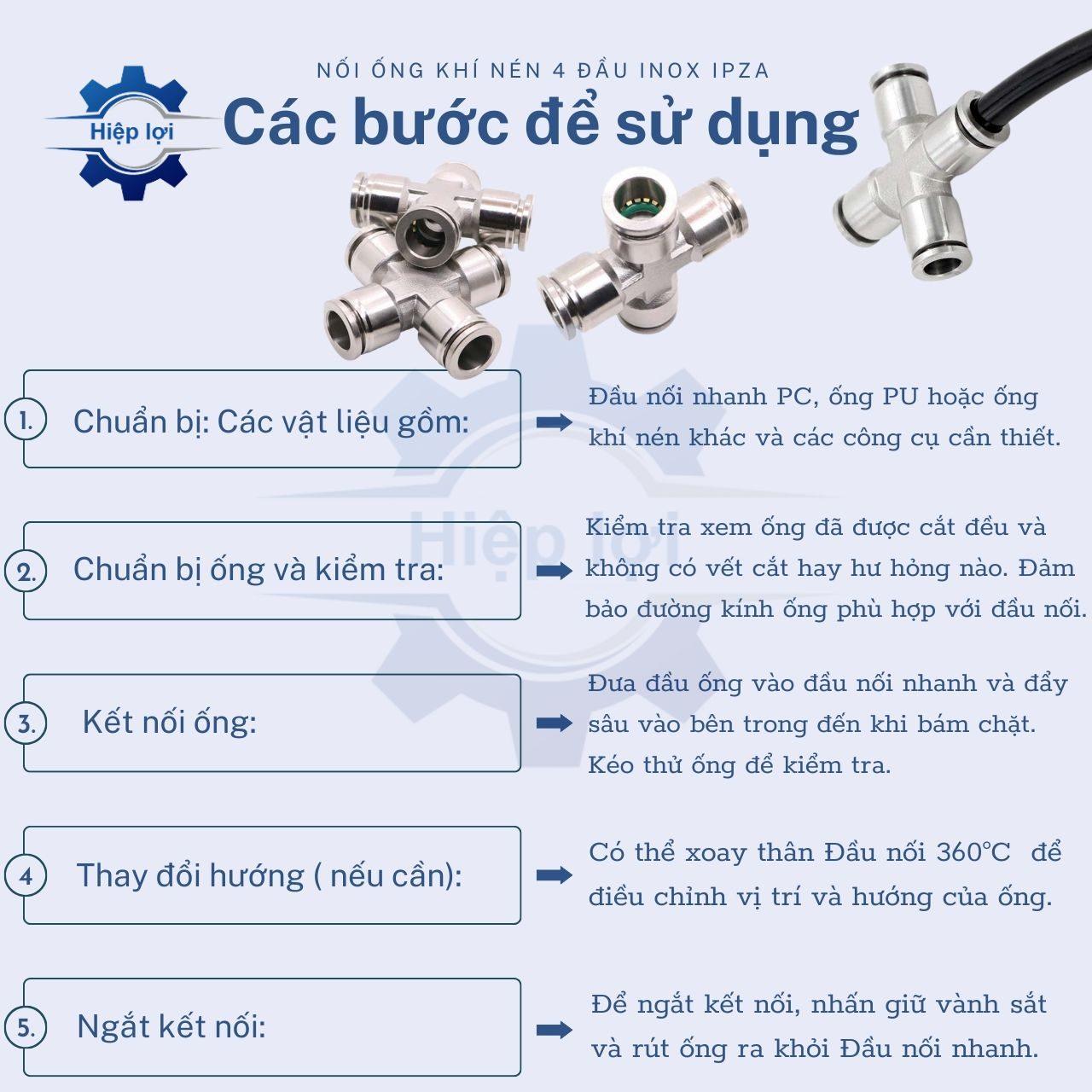 - Đơn giản và dễ sử dụng: Ngã Tư Nối Ống Khí Nén IPZA thường được thiết kế để đơn giản và dễ sử dụng mà không cần công cụ đặc biệt.