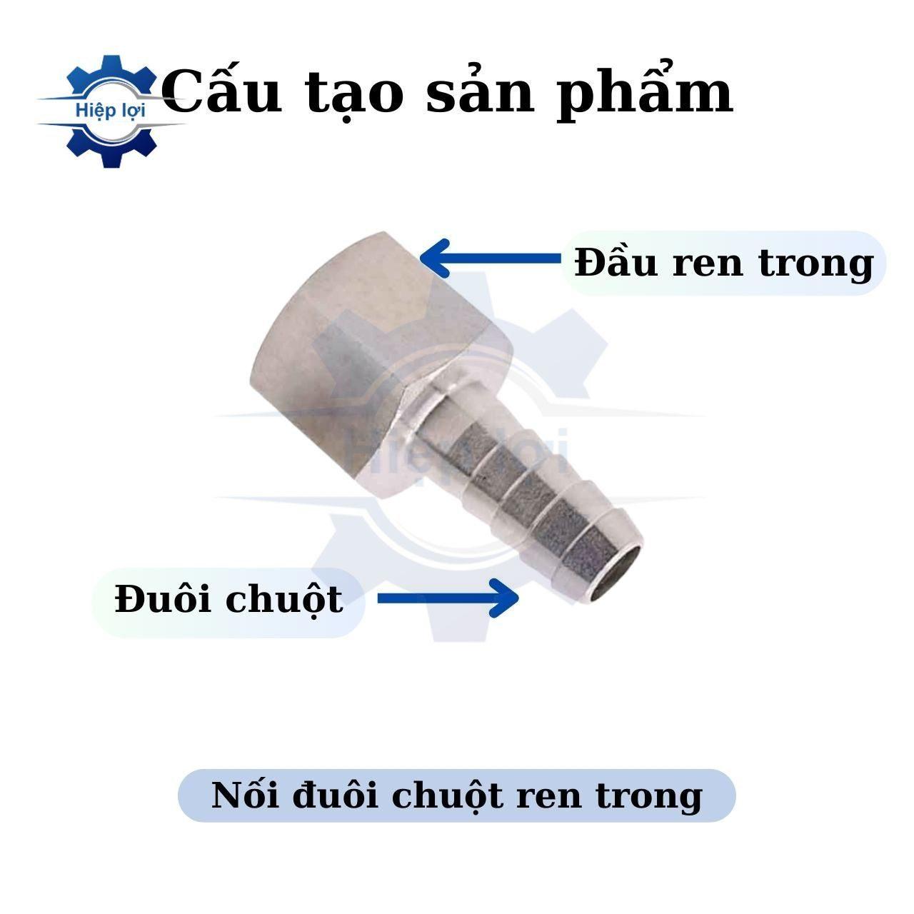 Nối đuôi chuột ren trong inox (hay còn gọi là nối đuôi chuột ren inox) là một loại phụ kiện nối ống được sử dụng để kết nối hai đoạn ống inox với nhau. Nối đuôi chuột ren inox có thiết kế đặc biệt với một đầu có hình dạng giống chuột ren (có rãnh ren) và đầu còn lại có hình dạng đuôi chuột để chồng nối với ống khác.