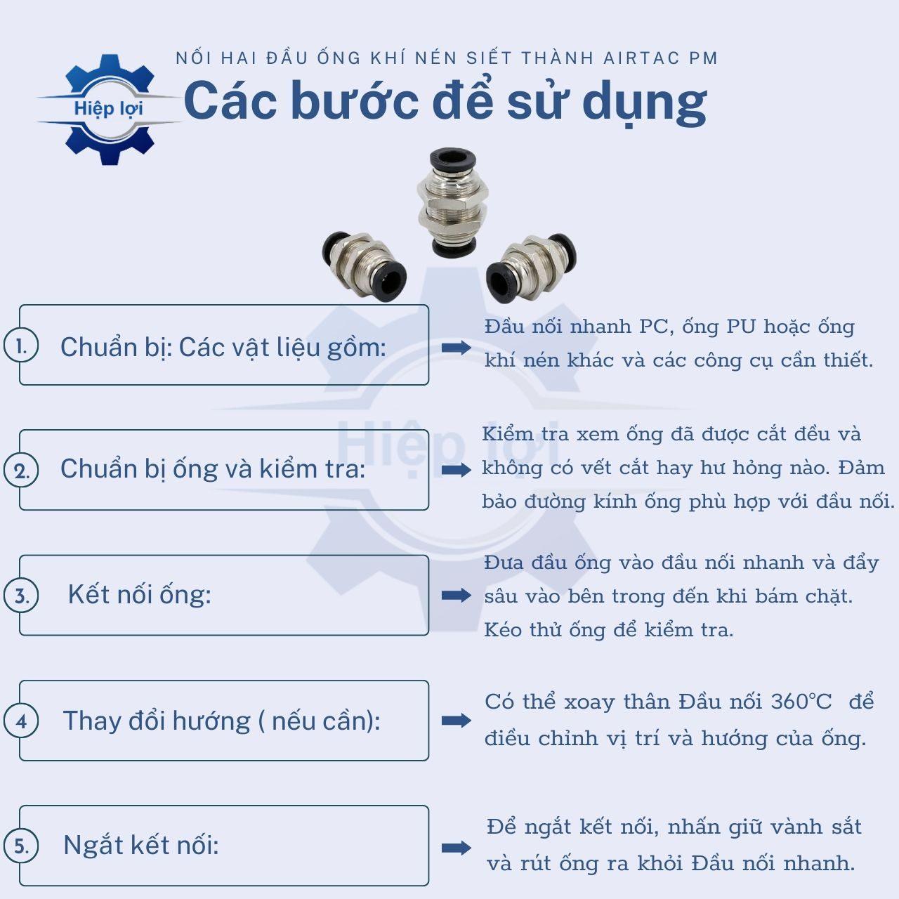 Khi sử dụng Nối Hai Đầu Ống Khí Nén Siết Thành AIRTAC PM, dưới đây là một số lưu ý quan trọng: