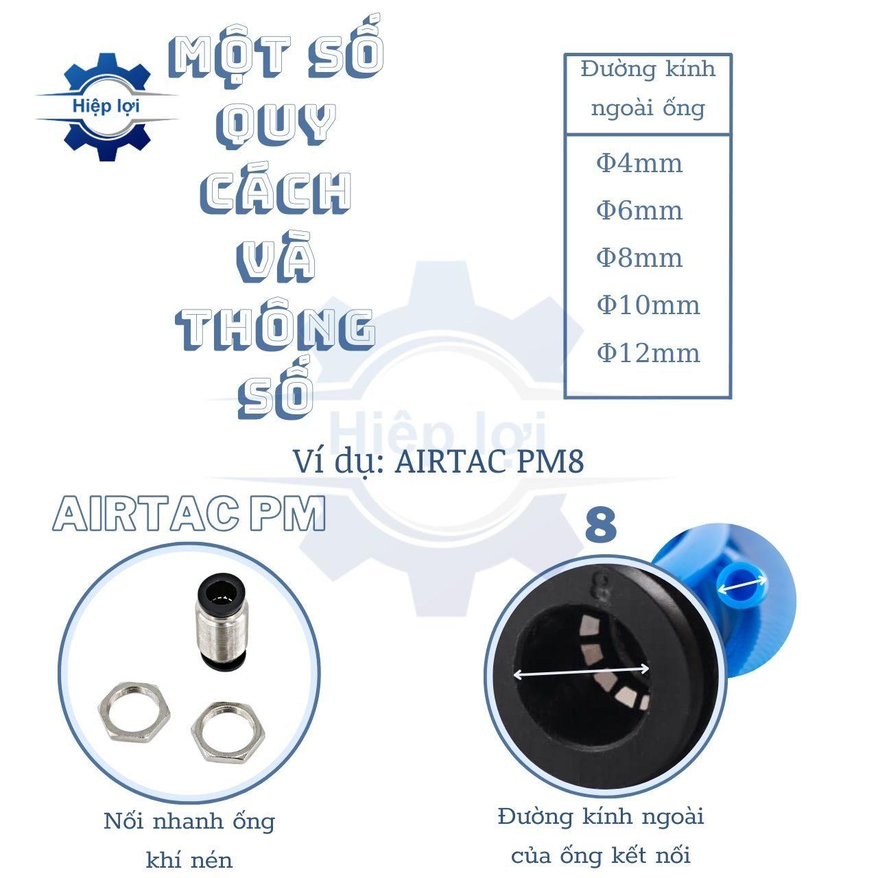 Nối Hai Đầu Ống Khí Nén Siết Thành AIRTAC PM là: