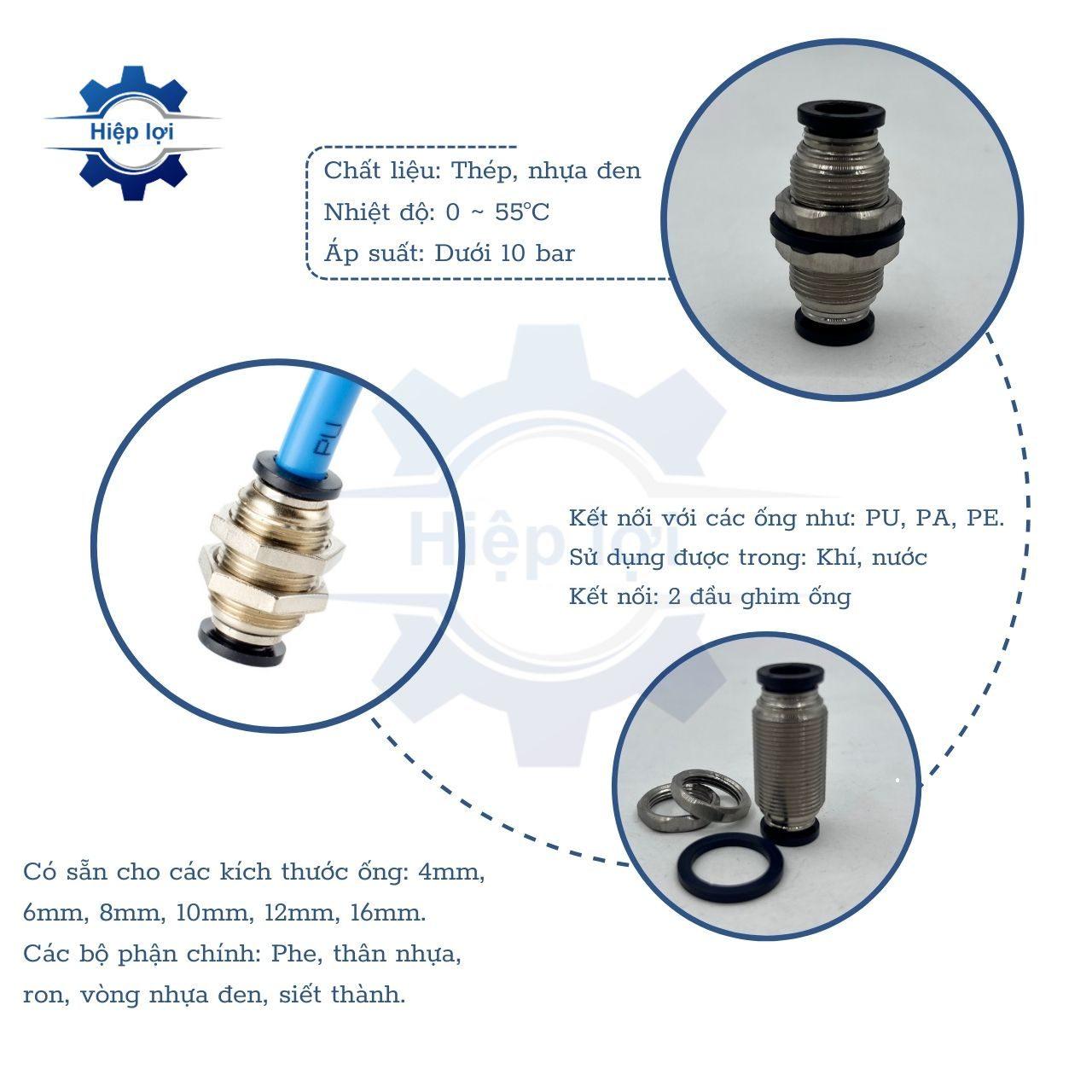 | Đường kính ống | Φ4mm, Φ6mm, Φ8mm, Φ10mm, Φ12mm |