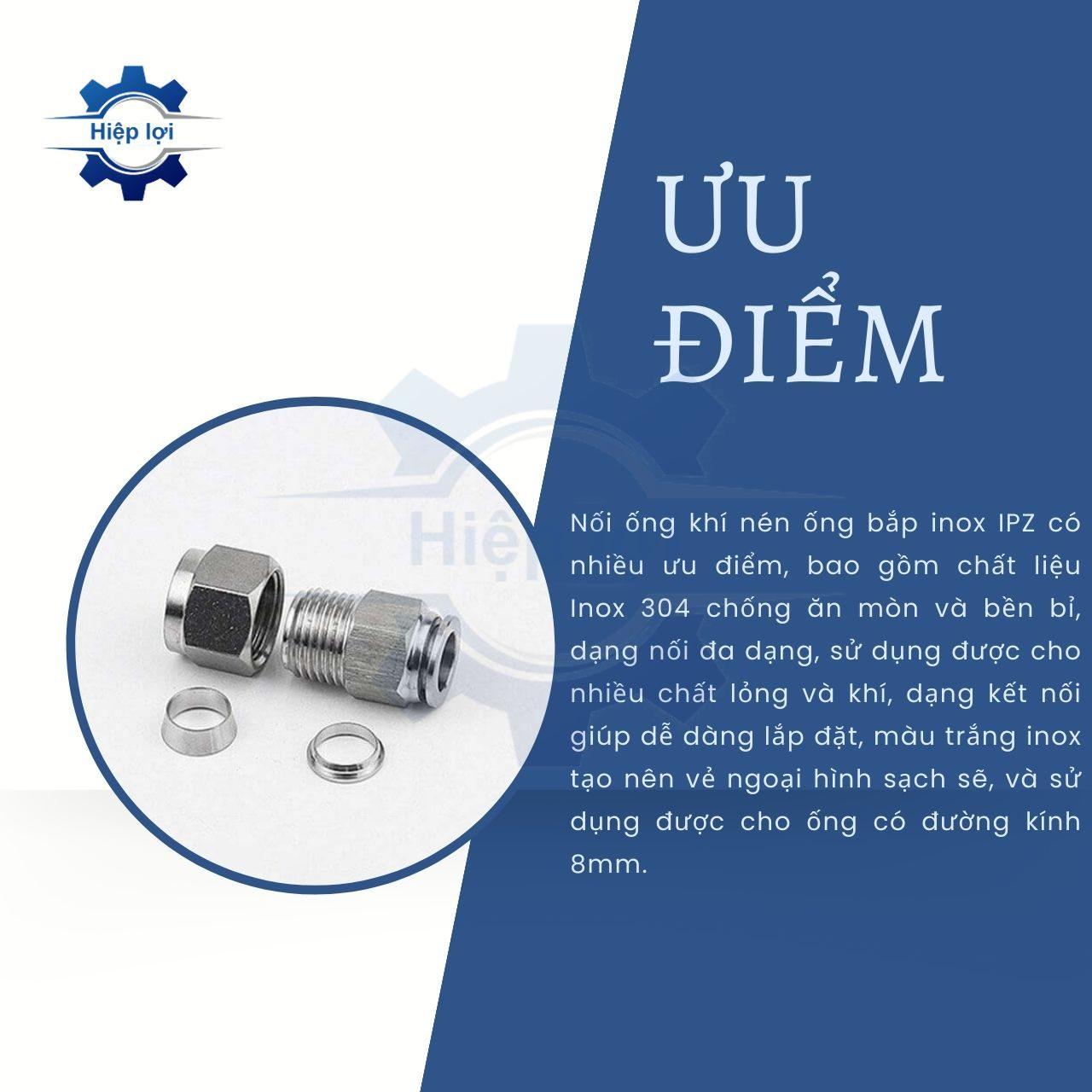 Các ưu điểm của Nối Ống Khí Nén Hạt Bắp Inox IPZ: