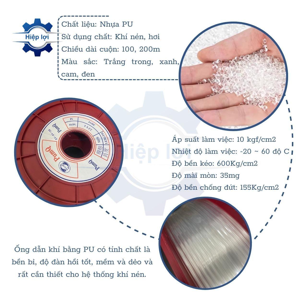 - Chất liệu: Ống được làm từ chất liệu polyurethane (PU), một loại polymer linh hoạt và bền bỉ.