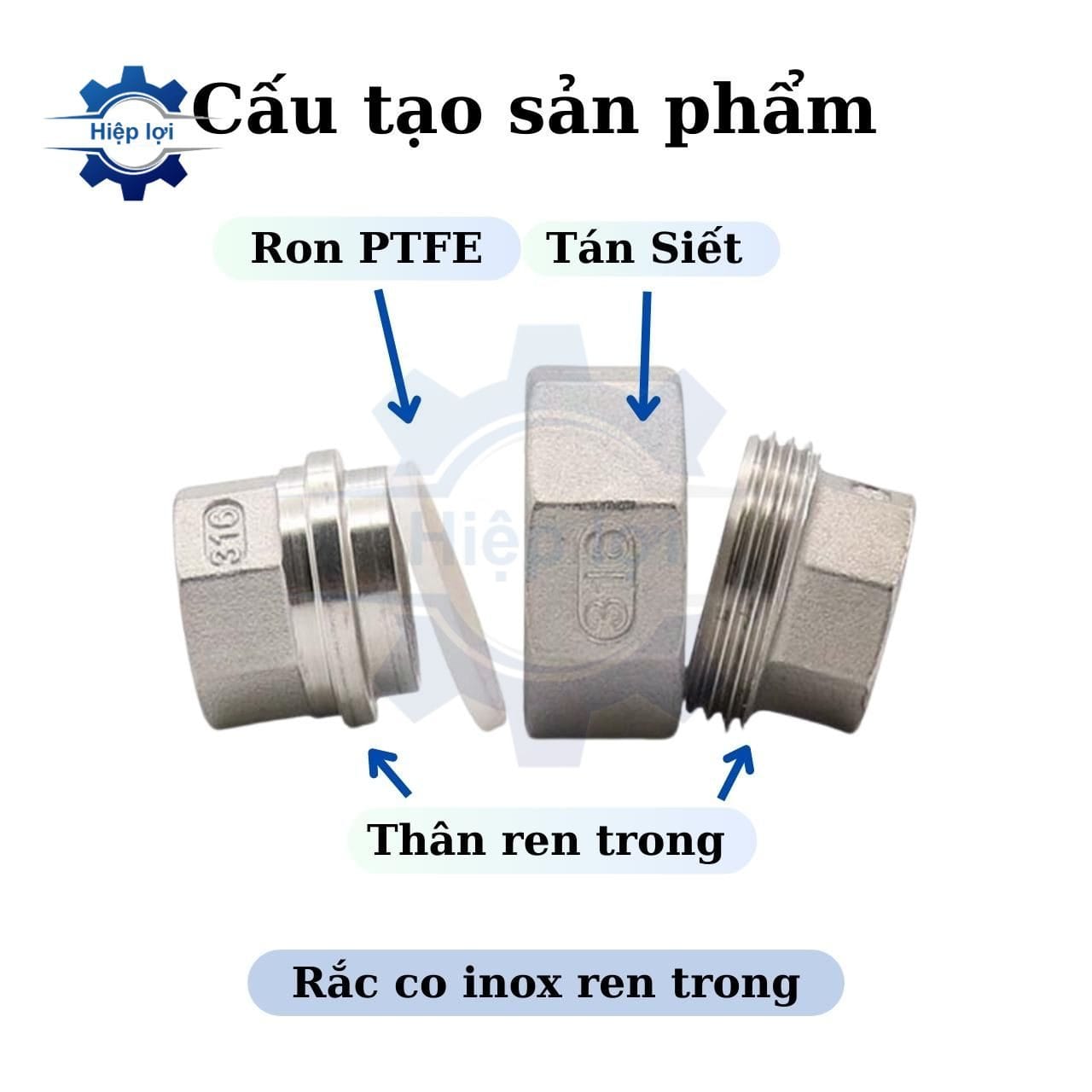 Đặc điểm nổi bật của Rắc Co Inox Ren Trong là nó được làm từ vật liệu Inox, là một loại thép không gỉ có khả năng chịu ăn mòn và có độ bền cao. Điều này giúp Rắc Co Inox Ren Trong có thể hoạt động hiệu quả trong các môi trường ăn mòn và có khả năng chịu áp suất và nhiệt độ cao.