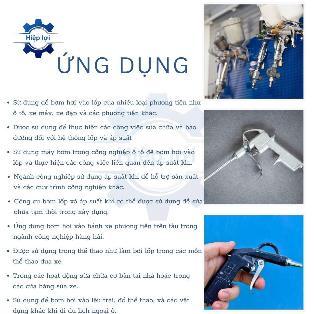 - Thổi bụi và thổi khô: Sử dụng để loại bỏ bụi bẩn hoặc làm khô các bề mặt sau khi rửa hoặc làm sạch.