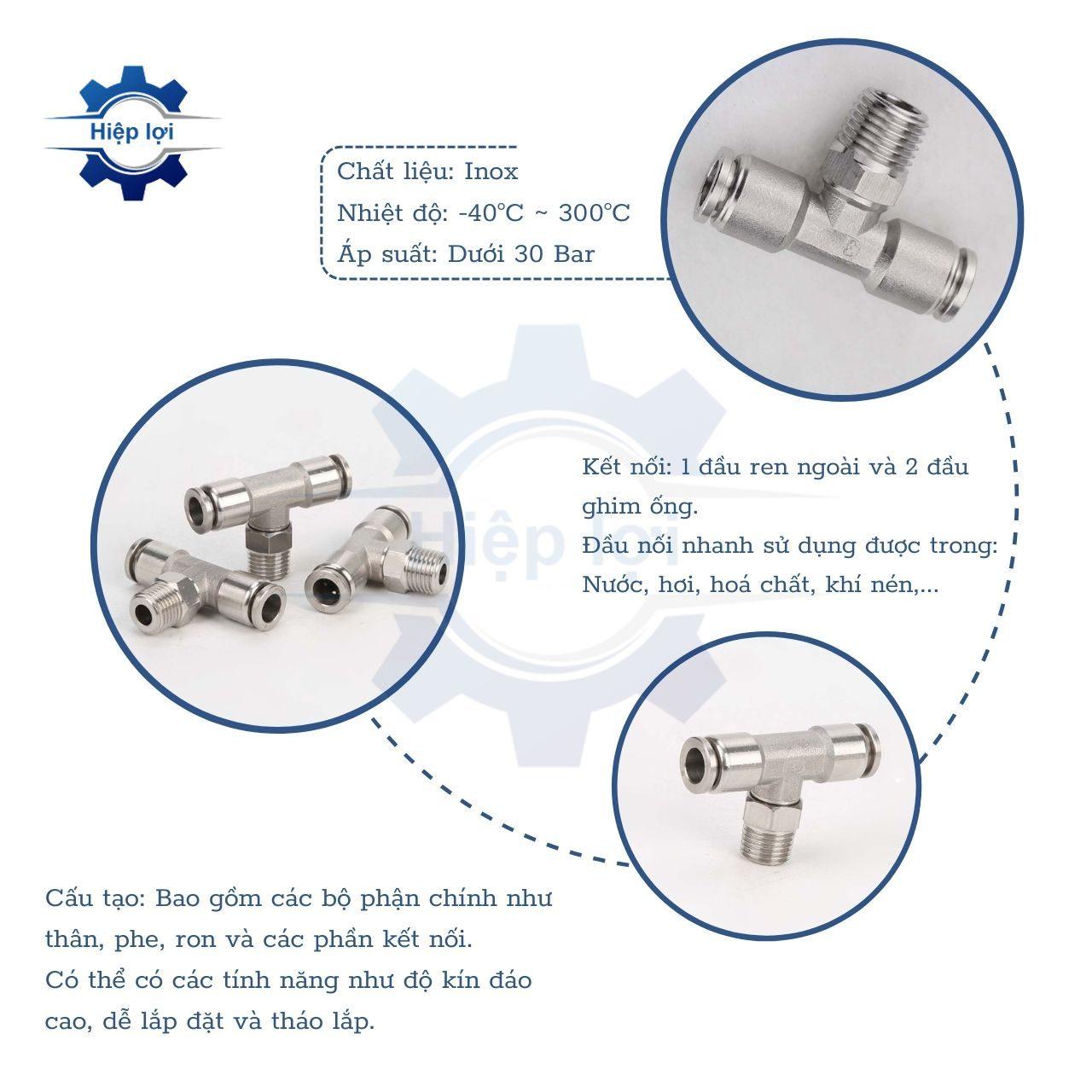- Chống Rò Rỉ: Phụ kiện được thiết kế để đảm bảo không khí nén không rò rỉ ra khỏi hệ thống, giữ cho áp suất được duy trì ổn định.