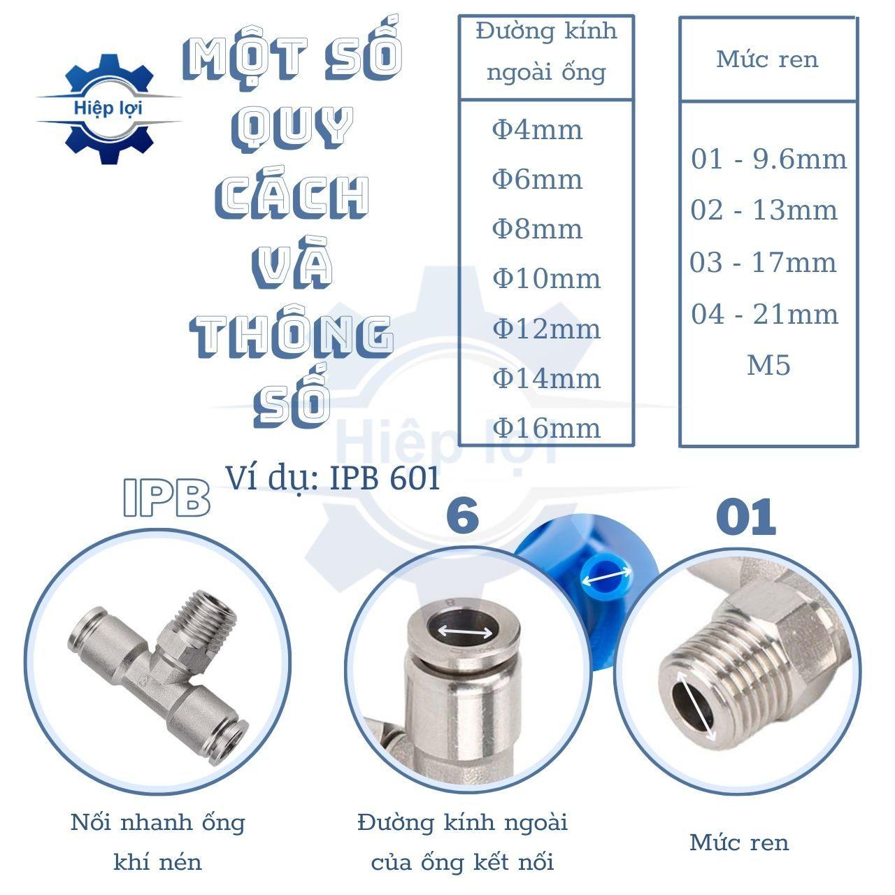 Tê Nối Ống Khí Nén Ren Ngoài Giữa IPB là: