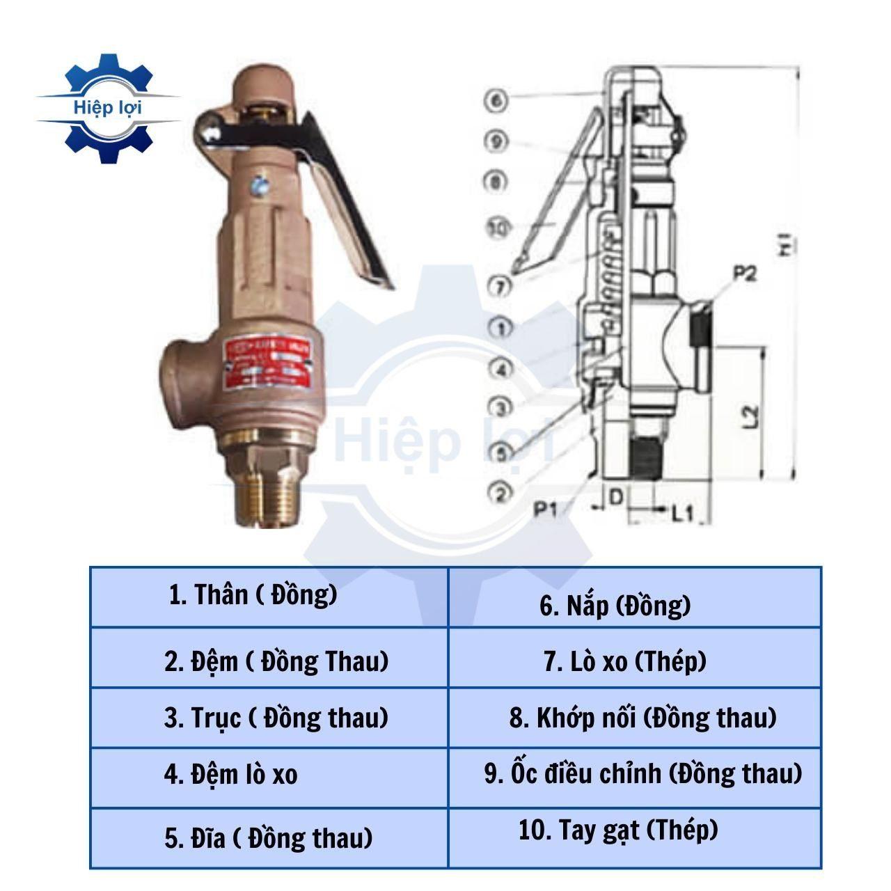 Cấu trúc của van an toàn có tay thau bao gồm các thành phần chính sau: