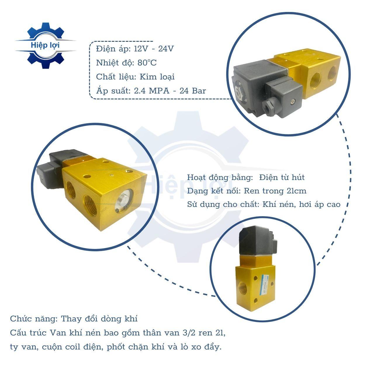- Loại van: Van điện từ khí nén