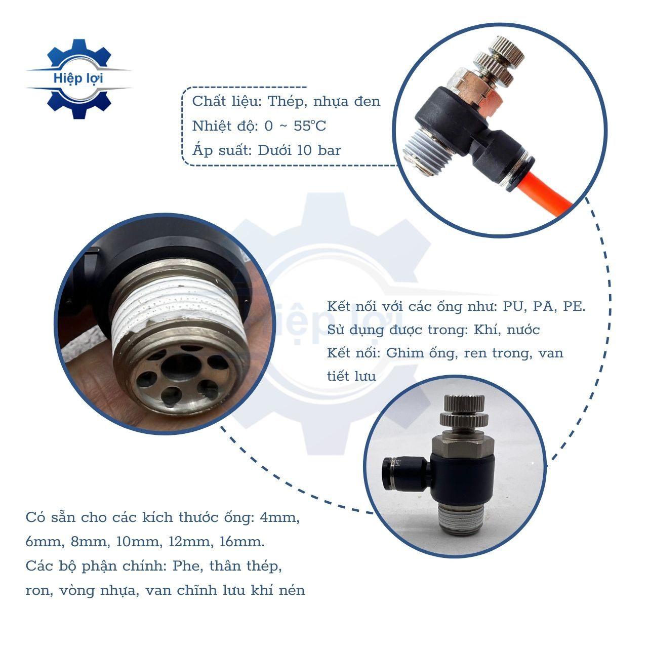 - Kiểm Soát Dòng Chảy: Van tiết lưu giúp kiểm soát dòng chảy của khí nén theo một hướng nhất định, giữ áp suất ổn định trong hệ thống.